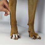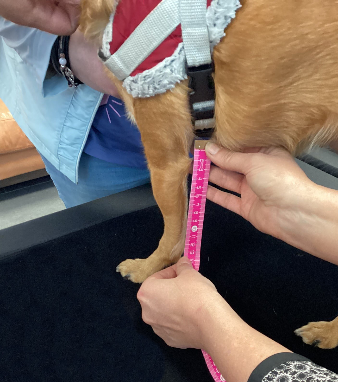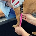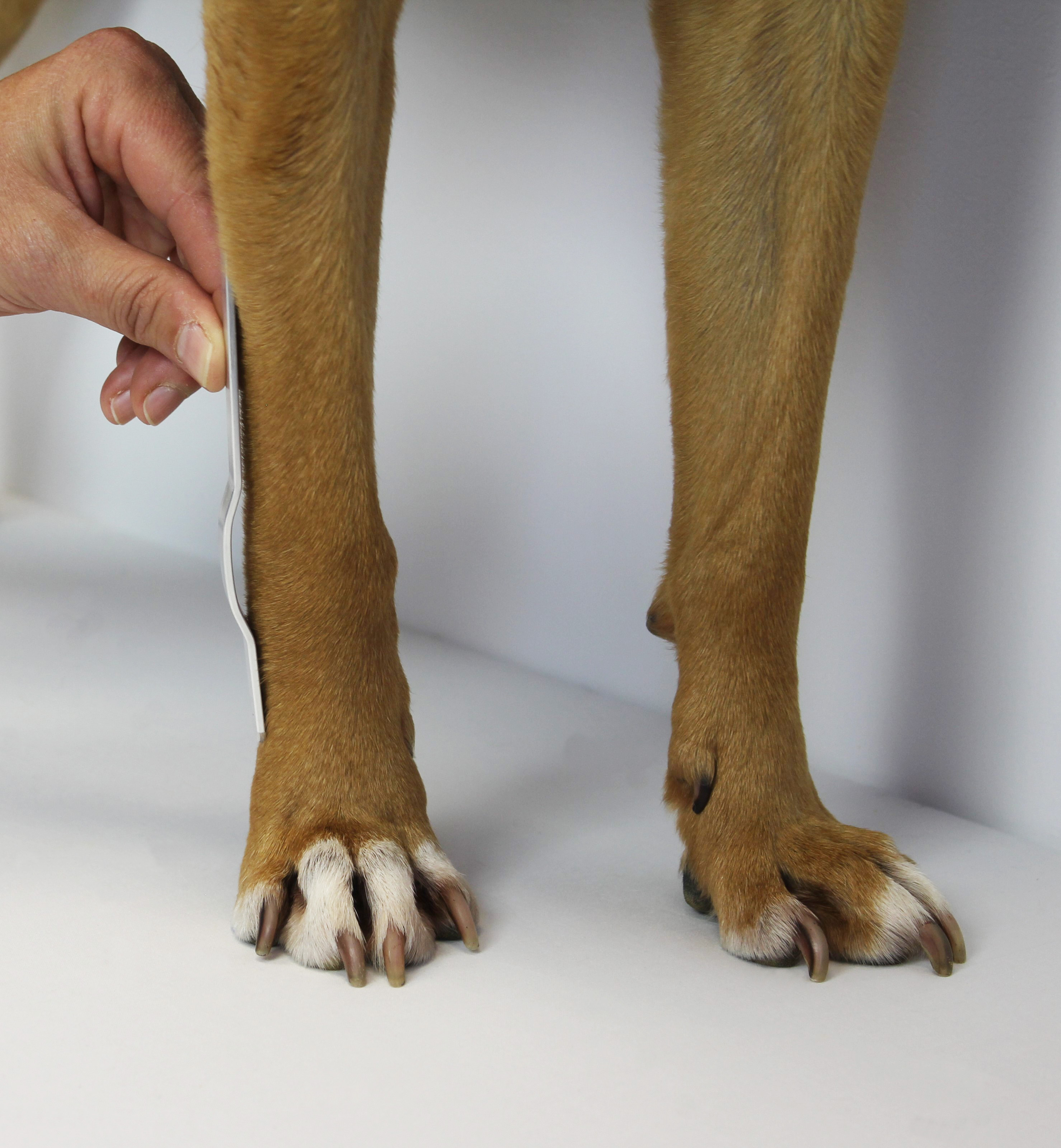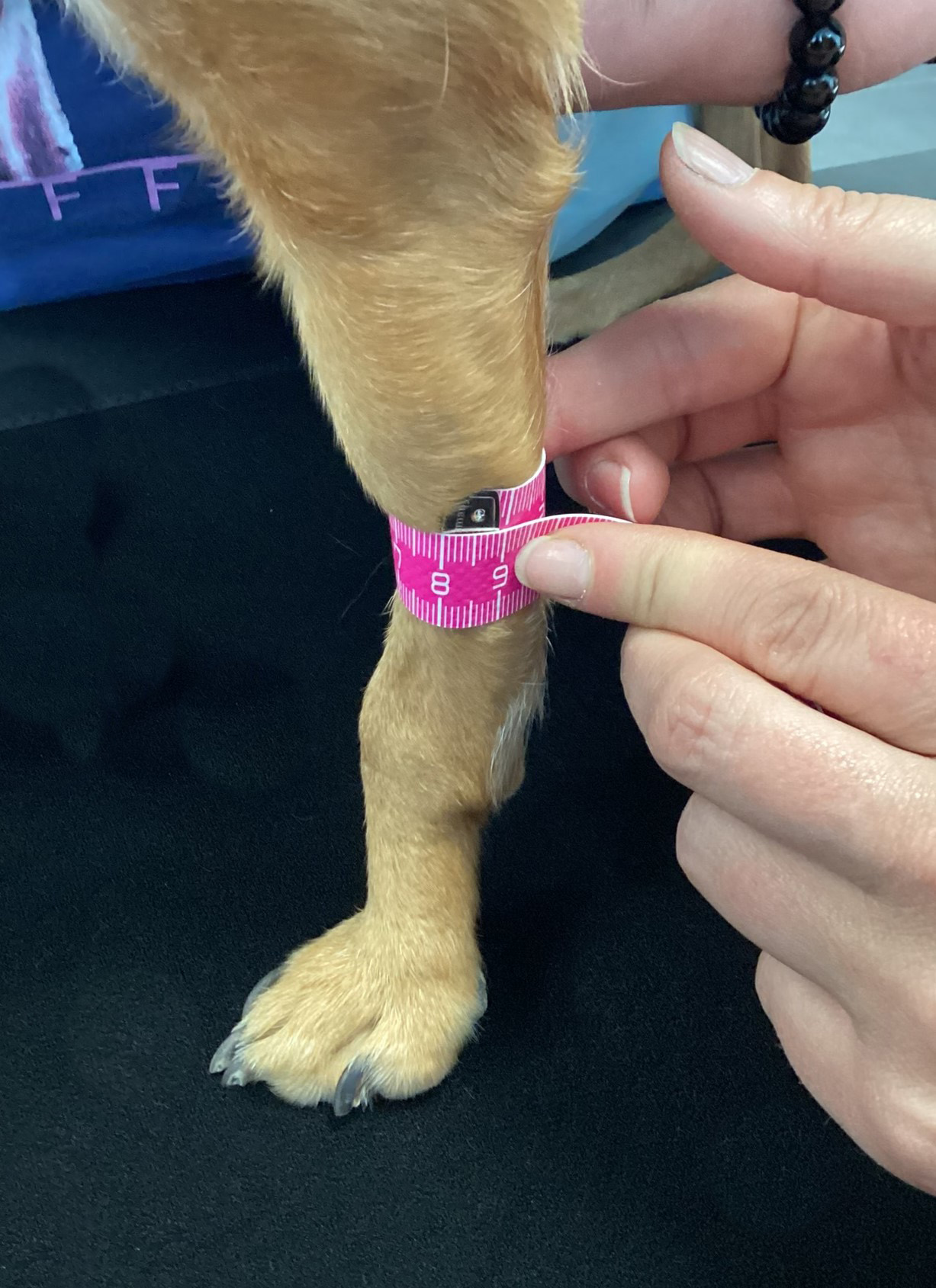 Versorgung einer dreibeinigen Hündin aus dem Tierschutz mit einer „Karpi stabil Karpalgelenkbandage“. Aufgrund der angeborenen Dreibeinigkeit kam es zu einer Überbelastung der Bänder und Sehnen des vorhandenen Vorderbeins. Daher bekam sie die „Karpi stabil Karpalgelenkbandage“ zur Unterstützung.